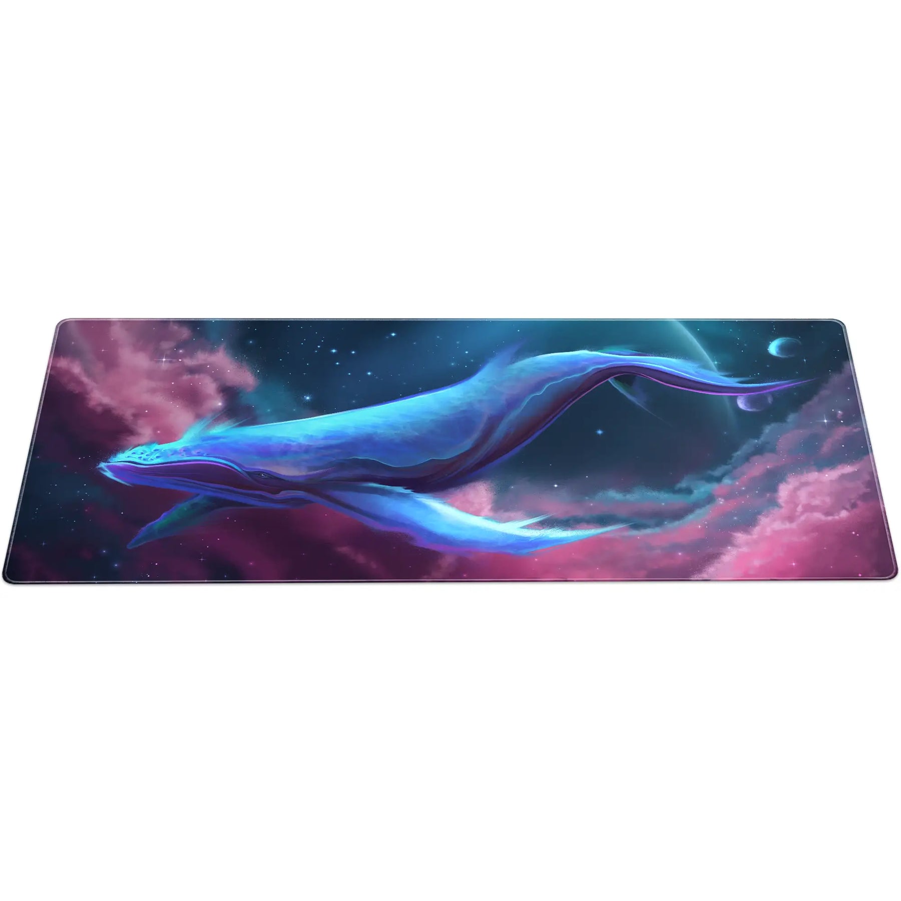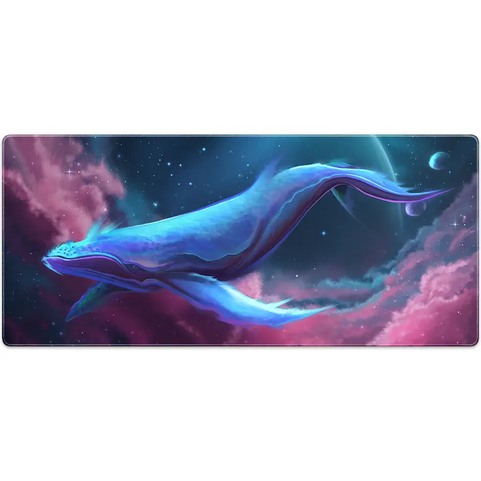 Cosmic Cetacean – In a galaxy where oceans meet the stars, a majestic blue-and-pink whale swims through cotton-candy nebulae and twinkling blue swirls. A dreamy voyage through the cosmos, perfect for those who love a splash of magic on their desk.
