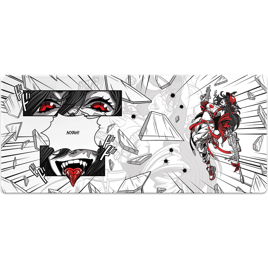 Cracked – A high-octane blend of manga artistry and FPS intensity. Against a backdrop of shattered glass and bullet holes, our fearless heroine wields a sniper rifle and SMG, ready for the next takedown. Inspired by the gaming term ‘cracked’, this design celebrates players with razor-sharp reflexes, pinpoint precision, and unstoppable skill.